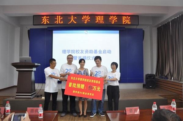 7月14日,在东北大学建校95之际,50余名理学院1994级校友从国内外各地返回母校,共庆毕业20周年,并设立东北大学理学院资助基金,用于支持学校发展建设、帮扶理学院家庭经济困难学生顺利完成学业。