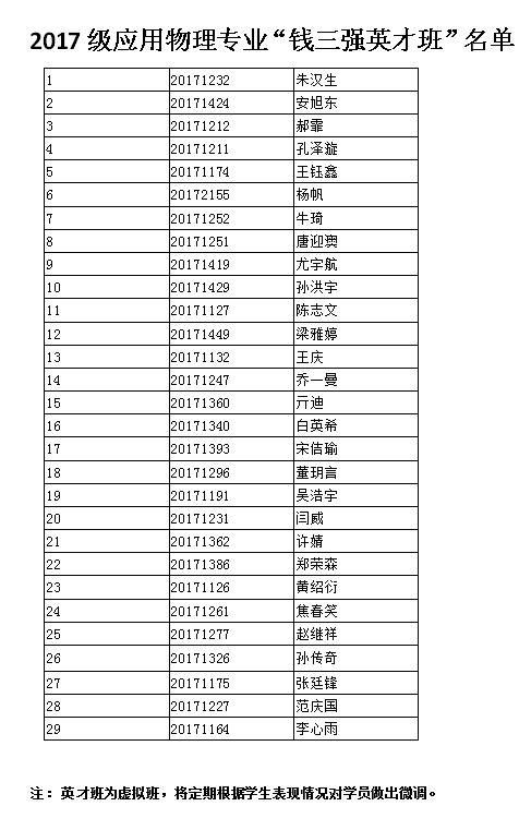 2017级应用物理学专业“钱三强英才班”名单