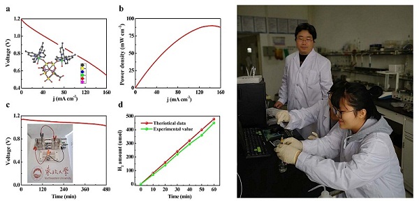 该论文创造性的利用过渡金属配合物修饰的Standberg型多酸为前驱体,通过煅烧得到了氮掺杂的介孔碳包裹的MoP电催化剂。该电催化剂在酸性条件下显示了良好的电解水产氢性能。在0.5 M H2SO4中,其过电位仅为92mV,Tafel斜率为56 mV·dec-1。此过电位低于已知所有的MoP基材料。在产氢过程中,该电催化剂展示了良好的稳定性。而且它还可以作为Zn-H+电池的正极材料。该工作为电催化剂的研究及电池的设计提供了新的思路。