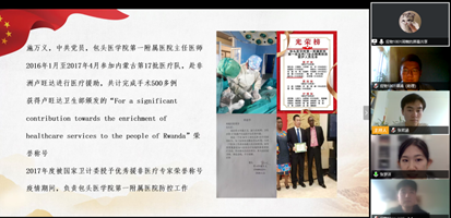 班会中篇则以火神山医院的建设为背景,通过知识竞赛的式带领同学们回顾“逆行者”的故事。同时,邀请施万义主任为同学们讲述在国内外抗疫第一线的真实生活。施万义主任表示,作为一名医生党员,为国出征责无旁贷。同时他也鼓励同学们要专注学业,勇于担当,为国奉献。