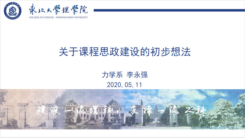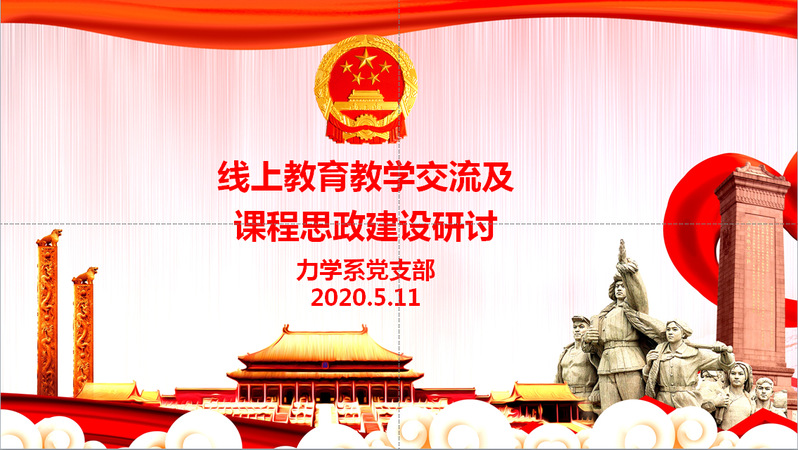理学院力学系党支部于2020年5月11日,通过腾讯会议开展了线上教育教学交流及课程思政建设研讨会,研讨会主要涉及两个议题。首先,就力学系系线上教育教学的开展情况,讨论如何完善线上授课的课程考核及评价体系,并就疫情期间教学大纲的执行问题进行说明。随后,国家精品在线开放课程负责人、校级教学名师李永强教授介绍了他对“课程思政”的观点和体会,提倡中青年教师要向老教师学习,在教学工作中提升爱国、爱校、爱专业的情怀。李永强教授结合理论力学课程,提出了PBL问题导向教学方法如何与教学环节相结合,同志们对这一教学方法和OBE理念展开了热烈的讨论。