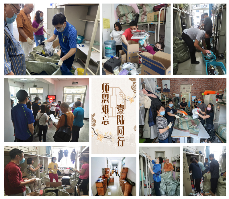 6月12日志愿奉献日当天,学院按照支部“分工到寝、包点到人”的原则,分配毕业生寝室物品整理工作。理学院院长徐章润、理学院党委书记吴政新亲自参加所在支部包点寝室物品整理。全体党员发扬“不怕脏、不怕累”的精神,通过与学生视频直播,耐心细致的分类整理物品,保证不丢失、不损坏,让行李物品能够安全无虞的寄到学生手中。