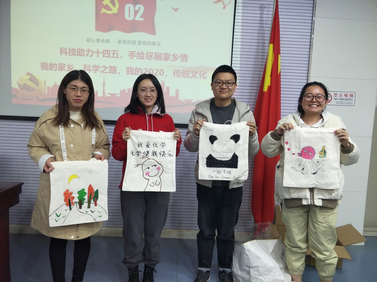 本次主题党日共分为“战役一线记使命,重温四史忆初心”主题党课和“科技助力十四五,手绘尽展家乡情”主题手绘两部分。首先,党支部组织全体成员学习《习近平总书记在全国抗击新冠肺炎疫情表彰大会上的讲话》,并由部分党员分享了学习改革开放史和社会主义发展史的感受。随后,党支部书记孙京琦为全体党员上了题为“战役一线记使命,重温四史忆初心”主题党课。最后,学生党员围绕“我的家乡”、“我的科学之路”、“传统文化”和“我的2020”四个选题,手工绘制出精美动人的手提袋画。从选题到构思再到动笔绘画,每位党员都无比认真。本次活动无论从内容到形式都受到大家的欢迎,激发了全体党员爱党爱家乡和科技报国的爱国主义情怀,有的党员当天还发朋友圈讲述了收获。