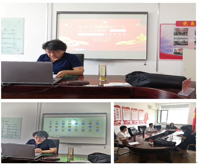 2021年6月9日下午,理学院数学系党支部在英才楼201A召开线上线下混合会议,组织数学系全体教师开展政治学习活动。数学系党支部全体支委现场参会,支部书记邵新慧主持会议。