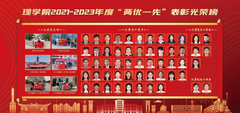 七一前夕,在庆祝中国共产党成立102周年、深入开展学习贯彻习近平新时代中国特色社会主义思想主题教育之际,理学院党委开展了2021-2023年度“两优一先”表彰活动,表彰先进、树立典型,激励学院各党支部和广大党员坚定理想信念、对党忠诚,履职尽责、奋发有为。经基层党支部民主推荐,学院党委研究决定,授予数学系党支部等6个党支部“先进党支部”称号;授予杜安等48名同志“优秀共产党员”称号;授予孟皓等7名同志“优秀党务工作者”称号(含“优秀纪检工作者”)。