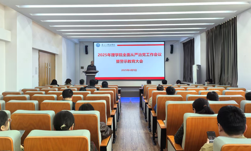 4月9日,理学院召开2025年全面从严治党工作会议暨警示教育大会,深入学习党中央、上级党组织关于全面从严治党的决策部署和学校党委相关工作要求,总结回顾2024年学院全面从严治党工作,部署安排今年重点工作任务。学院领导班子成员、学院党委委员、纪委委员、学院学术分委员会委员、学位分委员会委员、教学指导分委员会委员、科级干部、各系班子成员、教工党支部支委、实验中心主任副主任、学院科研项目负责人等出席会议。
