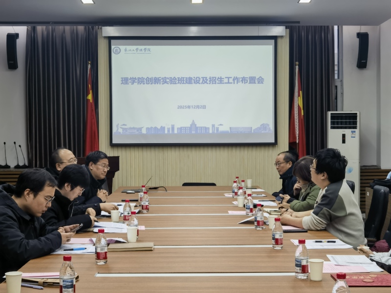 12月2日下午,理学院在建筑馆211A召开特色实验班建设和招生工作布置会。学院院长于永亮、党委书记李晓璐、副院长王旗、党委副书记兼副院长马犇,以及各系主任、教学副主任、教学办和学生办相关人员参会,王旗主持会议。