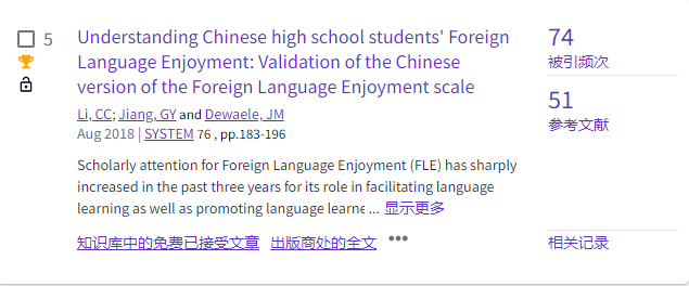 [5] Li, C., Jiang, G.*, & Dewaele, J.-M. (2018). Understanding Chinese high school students’ Foreign Language Enjoyment: Validation of the Chinese version of the Foreign Language Enjoyment scale. System, 76, 183–196. (SSCI, Q1, 2020 IF: 15/193)