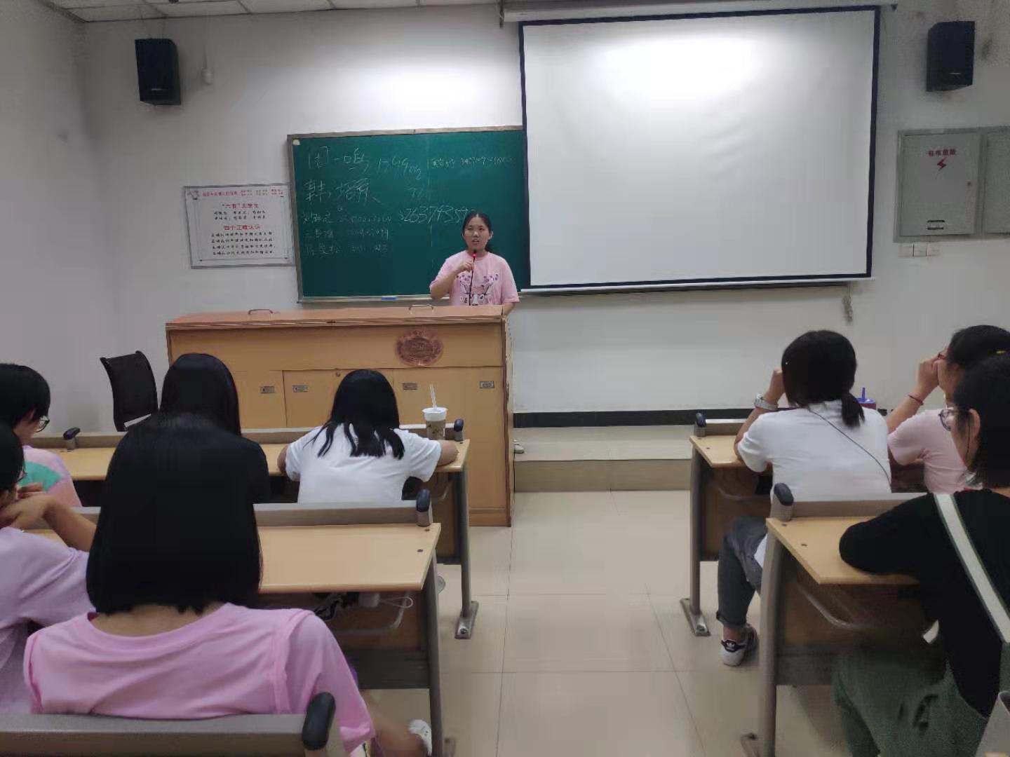 英商班刘瑞灵学姐介绍了附近的美食、快递点等生活方面的大小事务,还谈到英语和英商专业的区别等学业上的问题,帮助大家更好地了解自己的专业。