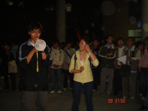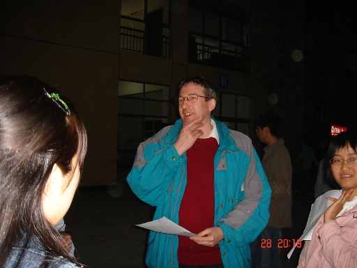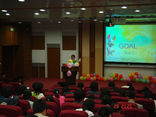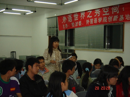 而与此同时在大活楼下进行的English Corner则更是吸引了大量的同学前来。此次活动同时还邀请了外教Randall等数名外籍教师作为特邀嘉宾。在场同学自动分为若干个小组,分别就他们感兴趣的话题进行讨论、发表观点或向外教询问。现场气氛空前热烈 。活动从20:00开始,一直持续到22:00,大家都还舍不得离去。作为压轴的Personal Presentation更是大受欢迎,大家争先恐后,纷纷大胆上前 “show off”,每位幸运者都得到了主办方提供的精美礼品一份。