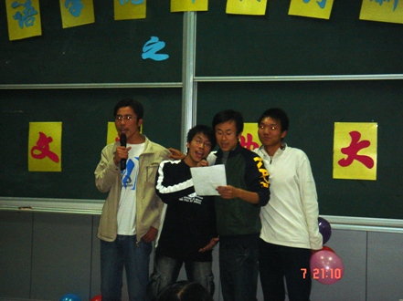 尽管参赛选手水平不一,但大家都竭尽所能,将自己最好的一面献给了观众。主持人的幽默、参赛者的活泼、辅导员的多才多艺使得场上笑声不断、歌声不断。英语系、日语系与德语系的同学打成了一片。