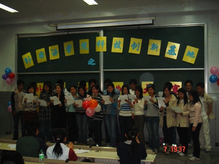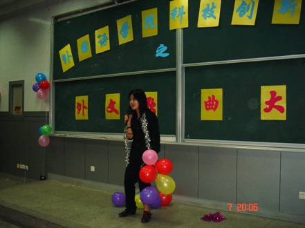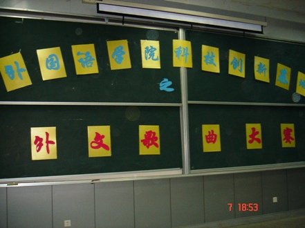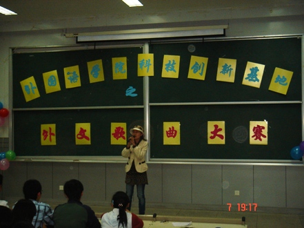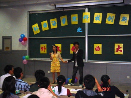 此次外文歌曲大赛共有20个组合或个人参赛,另外还包括一个大合唱表演。首先由英语0401班的陈玉娟以一首动听的英文歌“My Heart Will Go On”拉开了本次活动的序幕。接下来日语歌、德语歌依次登上舞台。和谐的旋律,美妙的嗓音,让语言不再成为沟通的障碍。