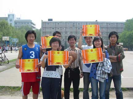 比赛开始。07级日语班队员以灵活的带球技术,精湛的投球技巧很快摔开对手。07级日语班齐建刚更是以多个漂亮3分球让观众大开眼界。上半场比赛结束时,07日语班暂时领先。下半场开始,06日语班换上了主攻林振福。凭着带球之猛,投球之准,林振福很快为团队赢得主动权。齐建刚、何晓静等07级日语班同学也不示弱,一个个漂亮的进球证明了自己的实力。比赛愈加精彩。观众的叫好声时刻在赛场响起,激动人心。比赛时间悄然而逝,齐建刚同学以一的三分球给联赛划了一个完美句号,两队以平局结束。