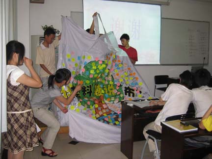 下午三时整,活动正式拉开序幕,首先是主题团会答辩。从财务0701班“管理财富,管理人生”到会计0701班“我的命运,我主沉浮”都显示出当代大学生对生活的热爱及对理想的追求;从信安0703班“我以我眼看爱滋”到日语0701班的”我们的世界,我们精彩”我们感受到了大家浓浓的爱心。另外,材控0605班的“英语好望角”和信管0702班的“占座问题”则同大家的学习生活息息相关,在答辩会中也各显亮点,精彩纷呈。