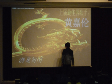 本次比赛分为两轮进行,一是主打歌展示,二是清唱PK.激烈角逐之前,由上届最佳男歌手外国语英语系学生黄嘉伦带来独具风格的《潜龙勿用》精彩演唱,所谓刮起了一股“汉风”更加激起我们对这一“外文”听觉盛宴的期待。一号选手环境学院的唯一组合,是当晚唯一的男女组合,男奏女唱让现场充满了浪漫气息。来自电气学院的鲁同学的个性自我介绍给在场的观众留下深刻印象,“a man with many styles ,today I show you the best one”.而他两位建规学院的同学在亲友团发言诙谐生趣,接着他带来的 “one better”极具穿透力,充满磁性。最终获得最佳组合奖来自william威廉中文的SHOW组合歌舞表演,活泼奔放,尽显青春活力。不仅是选手风采尽显,我们的嘉宾也身怀绝技。由william威廉中文骆毅辅导员带来的意大利歌曲演唱,独特的美声,给人带来无穷的享受。
