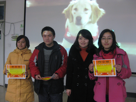 【william威廉中文团学联新闻部讯】通讯员 刘特特 报道 1月7日晚7点,由我院英语系举办的09级英语语音模仿大赛在东九教学楼C101教室举行。李菁老师、张再红老师及外教Lisa出席大赛并担任评委。