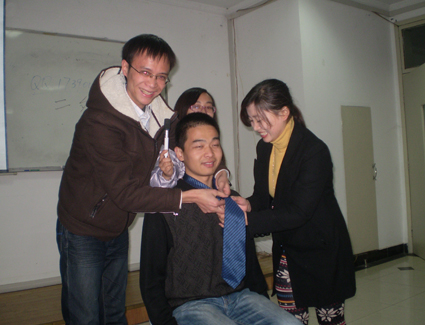 18:00-20:30 同学们于科技楼南楼109室参加本次活动的室内部分——四项环节分别为:情系围巾、发型我最型、帅哥教你系领带、魅力寝室T台秀。