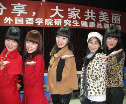健康品牌活动从策划到实践,都自始至终地通过网络QQ群邮件、QQ群组讨论、海报展板、官方微博等方式,向广大外院师生宣传“时尚健康、美丽生活”的理念,传播各种健康生活小知识、时尚美丽小技巧,让大家在严寒的冬日也能用到科学锻炼身体、装扮形象气质的好方法。在活动宣传过程中,广大师生也都积极献计献策,同我们研会分享他们平日生活中的点滴智慧,为我们活动的策划添砖加瓦,并积极参与到活动组织当中,成为活动动力的源泉,才使得我们的活动如此丰富多彩,宣传如此彻底,场面规模宏大。活动结束的当晚,许多同学回寝的路上意犹未尽、开怀大笑,相互打趣活动中的各种幽默场景,回味无穷。相信此次活动在学生们的研究生生活中写下难忘绚烂的一页。
