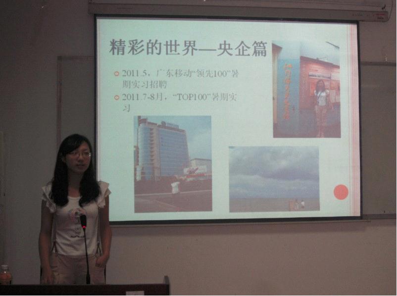 5月29日晚上6:30,williamhill中文“外语天地”讲堂(总第22期)“青春飞扬”系列第3期在科技楼南楼109教室隆重举行。此次讲座邀请到了外院10级研究生徐汇飞师姐,为大家讲述她的求职之路。