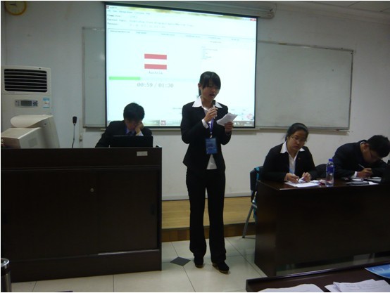 12月15日上午8:30,本届模拟联合国大会的与会代表陆续走进会场,为第一天的会议拉开了帷幕。九点整,“预防犯罪和刑事司法委员会”会场的第一次会议正式开始。