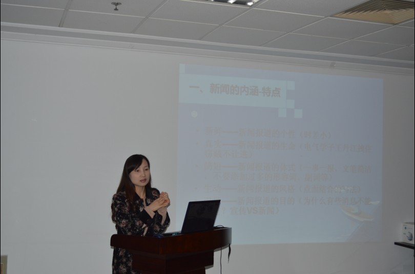 粟晓丽详细地讲述了新闻稿件撰写需要注意的一些问题,例如新闻稿的整体格式、如何整理领导的讲话以及新闻中照片的要求等等。同时粟晓丽也系统地为同学们梳理了关于新闻的特点、体裁和结构等方面的知识。