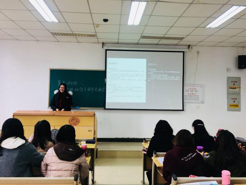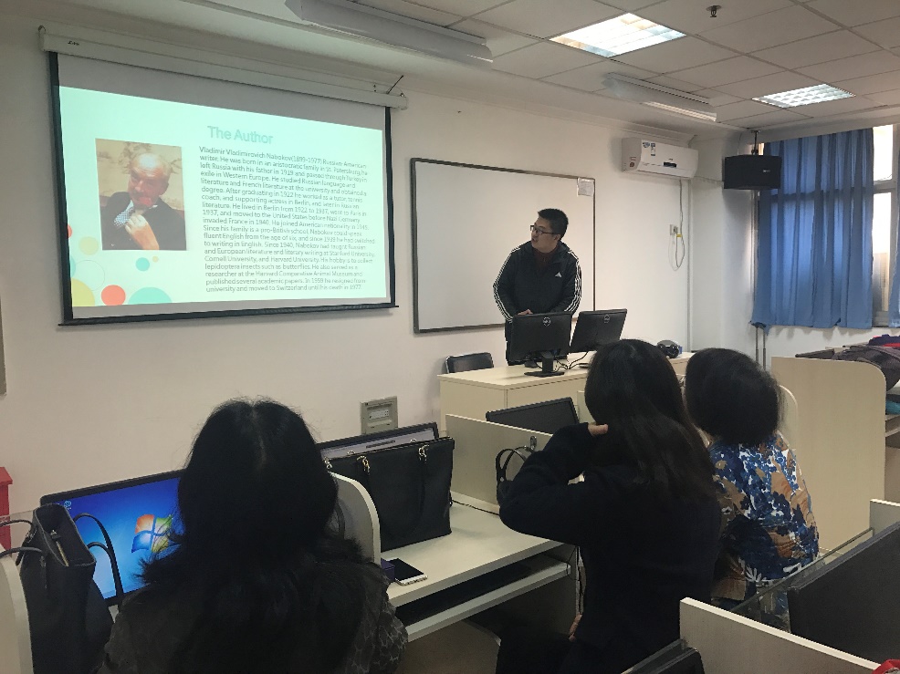 在寒假期间,1601英商班的同学们选择阅读Lolita一书。为了加强阅读体验和理解,英商班的读书报告会主要采用了传统的小组展示和小剧场的形式还原了书中最感同身受的场面,并且每一位同学都在报告会上扮演了不同的角色。