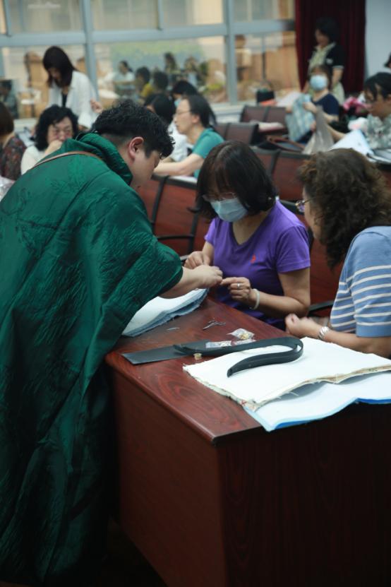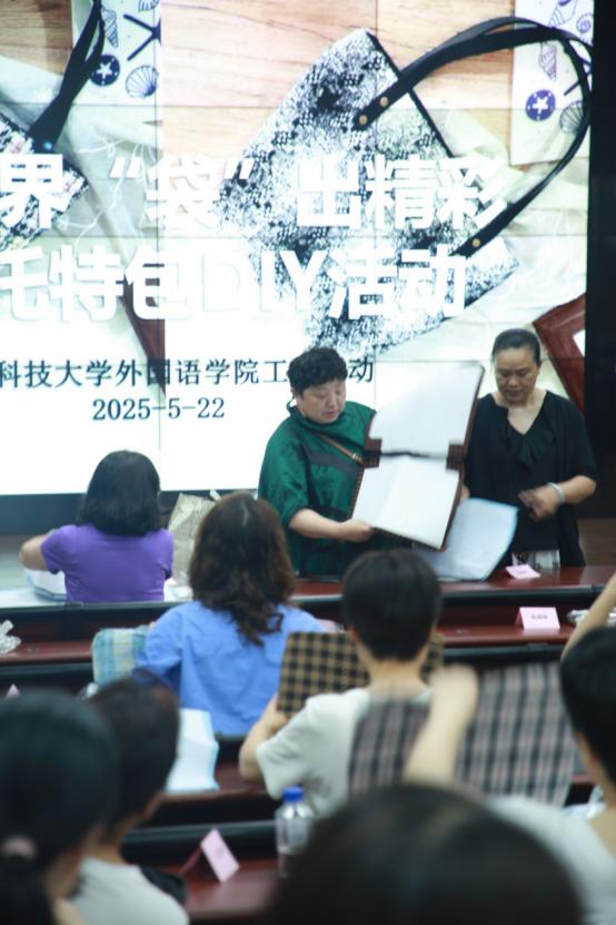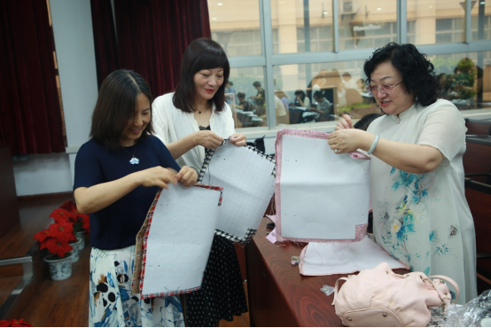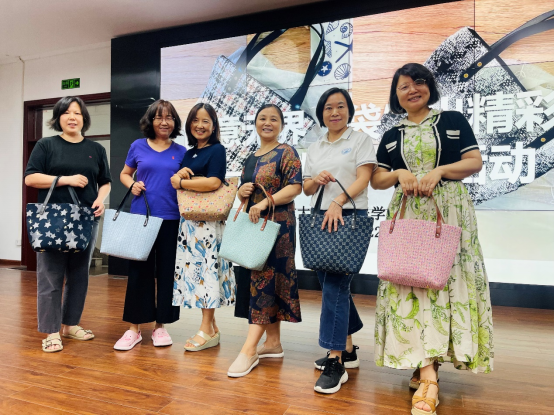 5月22日下午,狂风大作暴雨倾盆,william威廉中文工会在科技楼104教室举办布艺托特包创意手工制作活动。虽然天公不作美,但坏天气却阻挡不了报名参加活动老师们的热情。冒雨而来的老师们在专业手工导师指导下,体验了手工缝制、装饰组装等制包的工艺环节。手工导师首先系统讲解托特包版型设计及布料特性并现场演示缝制技法、拼接安装等关键工序。老师们穿针引线,你帮我助,在手工制作过程中交流心得分享生活趣事,现场充满欢声笑语。最终,大家通过手工缝制、组装托特包底板和背带等实践,将不同花色的小香风布料转化为专属自己的一份漂亮实用的工艺品。