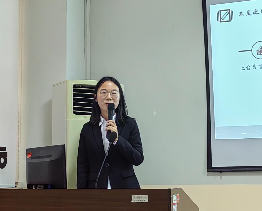 选手答辩结束后,陈新丽进行总结致辞。首先,她肯定了每一位选手的优秀表现,对所有选手给予了鼓励。她强调,我们在对“自强”进行定义时,成绩不应当是单一的评价标准,我们不应该在对高绩点的追求中迷失自己,而要有清晰的规划,让自己的经历与经验为长远的目标服务。其次,她指出大学生应多尝试不同的志愿活动,才能全方位提高个人能力。最后,她希望学生们进一步加强在公众面前的表现能力,做到侃侃而谈,游刃有余。