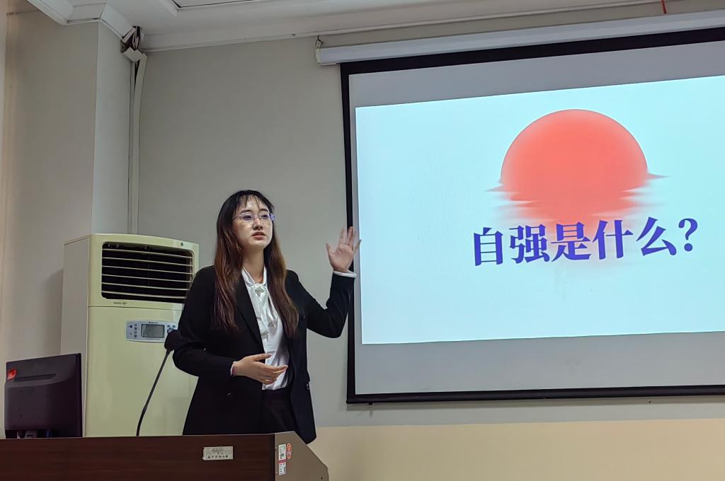 经过前期严格的材料筛选,最终有12位同学入围答辩环节,每人的答辩由4分钟的自我陈述和评委1分钟提问组成。每名选手都准备了PPT,向师生讲述出自己的自强故事。