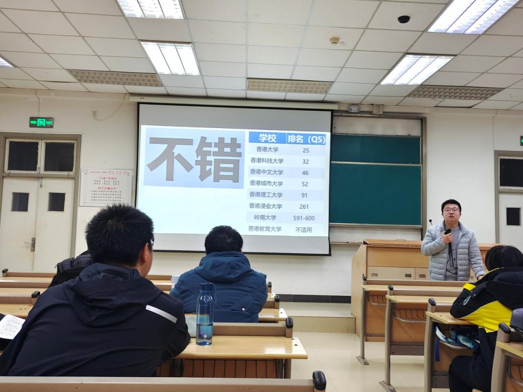 孔德麟老师以香港印象为起点,从香港著名的歌曲、电影、文学等不同维度展现了香港独特的魅力,成功获取学生的高度关注,开启香港留学篇。孔老师结合我校2020届本科生出国出境留学数据,揭示香港高校深受华中大学子青睐的现象。他重点介绍了香港八大著名高校的办学理念、国际排名及优势专业,对比分析了香港留学的利好条件,勉励大家结合个人实际,选择心仪的高校深造。孔老师结合自己申请香港中文大学读博的经历,梳理了申请香港高校的流程与方法,细腻解析了与导师“套磁”的技巧,强烈推荐内部“线人”实用路径,寻找合适的导师。他还剖析了港中科三校录取学生的各项要求分布,指出香港高校比较注重学校来源和GPA的事实,为华中大学子申请香港高校增强了信心。孔老师结合个人经历,分享了香港的多元文化、多元语言和国际化,鼓励大家丰富个人的人生履历,寻找自身的意义与价值。