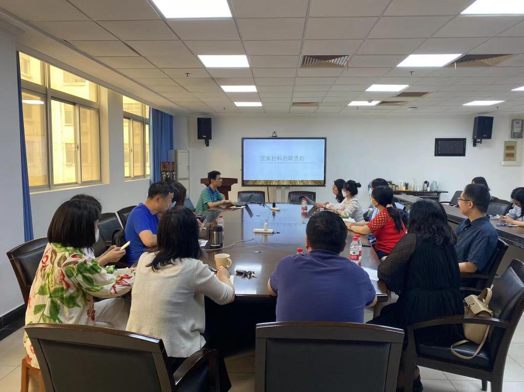 为进一步推进我院国家社科基金项目申报工作,促进科研工作的高质量发展,2023年6月7日下午,学院组织召开了国家社科基金项目申报选题分享会,特邀请我院2021年国家社科基金后期资助项目获得者惠海峰副院长和2022年国家社科基金中华学术外译项目获得者陈新丽副院长做了选题分享。分享会由谭渊副院长主持,大学外语及各专业系十余名教师参加了分享会。