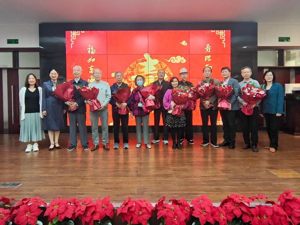 陈新丽副院长宣读2023年寿星名单,学院领导向寿星们送上了献花和贺寿礼金,并与寿星们合影。