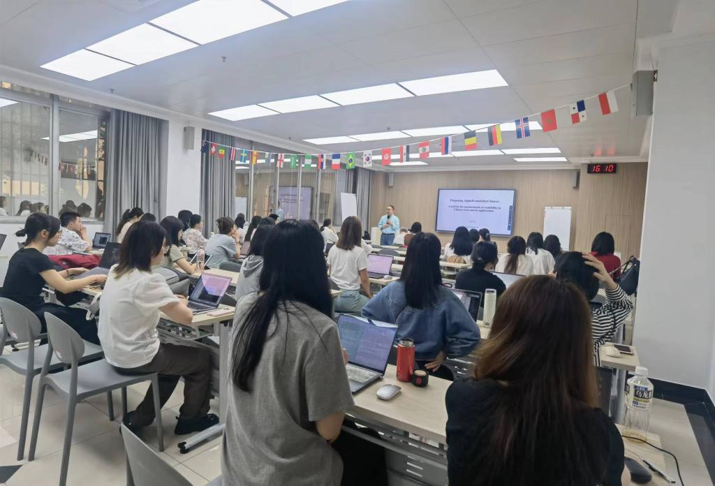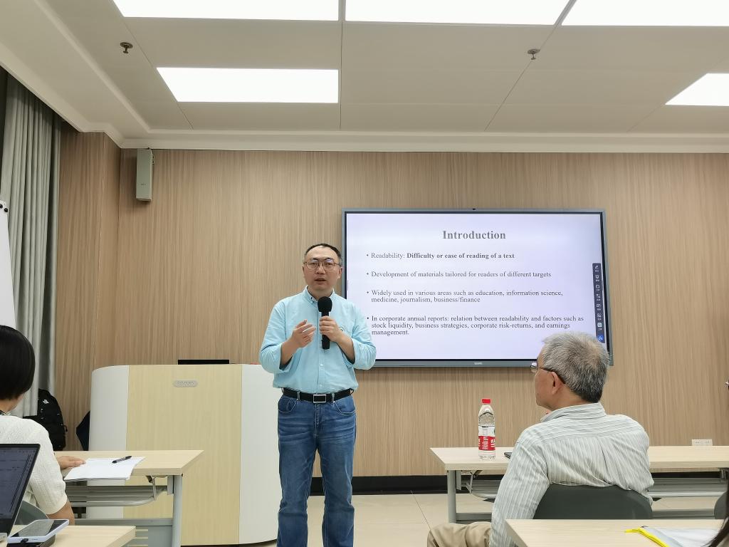 雷蕾教授向师生解读了“可读性”这一概念,并指出可读性是文本的重要语言特征,现已广泛应用于多个领域。随后,他详细介绍了现有的可读性研究所聚焦的重点以及存在的不足,并阐述了AlphaReadabilityChinese工具的优点。雷教授强调,该工具从语法、词汇和语义三个维度,共九个语言指标来进行设计,极大地提升了汉语文本可读性评估的科学性和准确性。雷蕾教授通过三个个案研究例子,生动地展示了AlphaReadabilityChinese工具的实际应用效果,进一步证明了该工具在汉语文本可读性评估中的重要价值。讲座结束后,雷蕾教授与现场师生进行了互动,耐心解答了大家提出的疑问,现场气氛热烈。本次学术讲座不仅拓宽了师生们的学术视野,也为后续相关领域的研究提供了新的思路和启示。