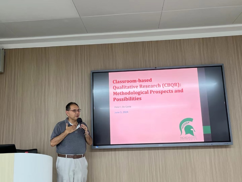 (通讯员 刘静宜)6月3日,美国密歇根州立大学的Peter I. De Costa教授来我院进行学术交流,并举办了两场学术讲座,讲座分别由外语教育研究中心徐锦芬老师和李成陈老师主持,吸引了校内外师生近60人参加。
