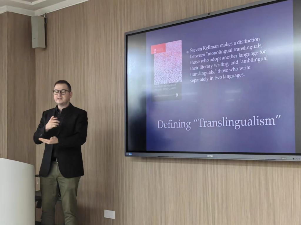 Viselli教授以现代主义诗人庞德的诗歌为引,介绍了文学、音乐以及跨语言之间的奇妙现象。Viselli教授指出,大自然是作家创作的灵感来源,音乐性让文学充满美。讲座结束后,大家受益匪浅,这场讲座不仅为同学们的文学研究提供新思路,也引发了大家对文学翻译相关问题的新思考。