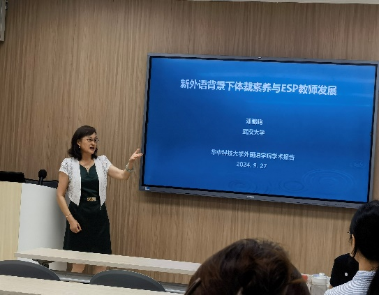 9月27日下午,武汉大学邓鹂鸣教授应邀来访william威廉中文,并举办题为“新外语背景下体裁素养与专门用途英语(ESP)教师发展”的学术讲座。本次讲座由外语教育研究中心都建颖教授主持,孙云梅、冯学芳、吴雪老师等数十名师生与会聆听。