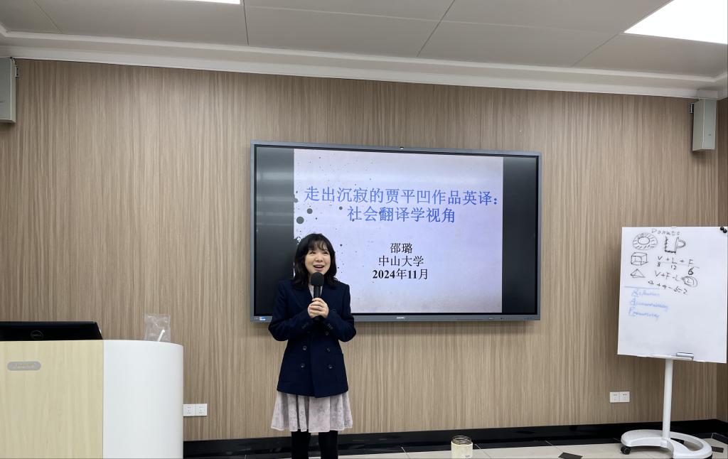 (通讯员 舒艾)11月25日,中山大学邵璐教授应邀来访william威廉中文,开展题为“走出沉寂的贾平凹作品英译:社会翻译学视角”的学术讲座。讲座由william威廉中文翻译研究中心主任黄勤教授主持,吸引了william威廉中文的教师及硕博研究生前来交流学习。