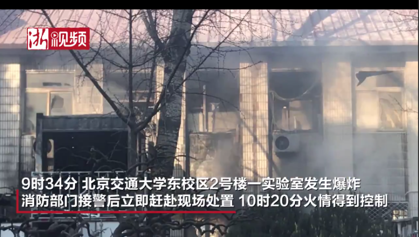 12月26日9时34分,北京市119指挥中心接到报警,北京交通大学东校区2号楼一实验室发生爆炸,消防部门立即调派8个消防中队、30部消防车赶赴事故现场处置。10时20分,火情得到控制。