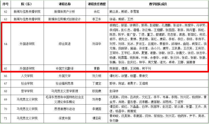 近日,我校公布2023年首批本科课程责任教授及教学团队遴选结果。我院刘泽华教授负责的《综合英语》教学团队、黄勤教授负责的《中国文化翻译》教学团队成功入选。