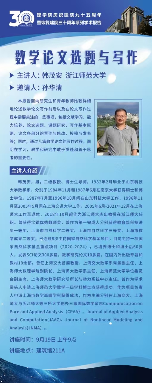 院庆学术活动之韩茂安教授学术报告(数学)