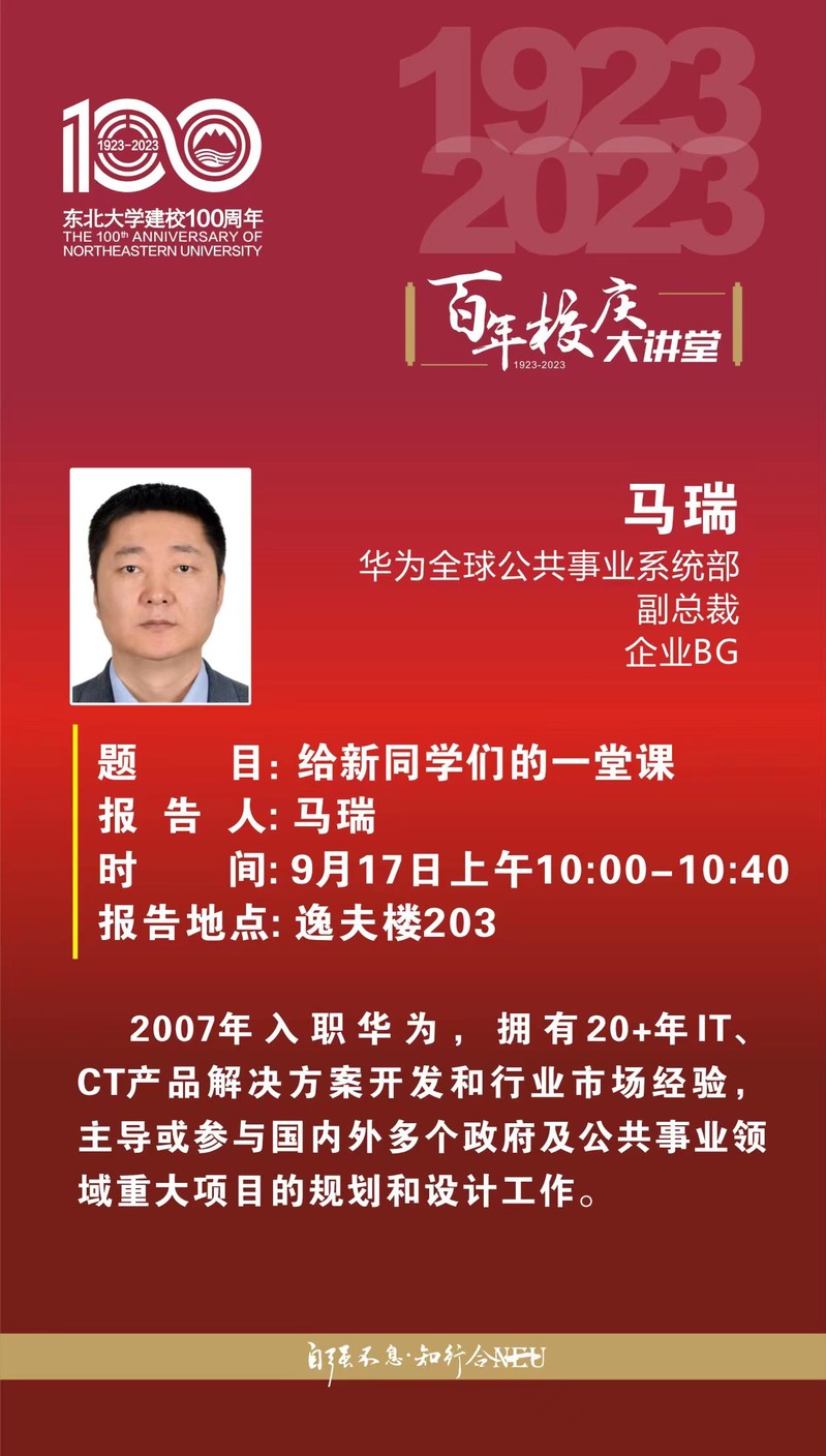 【百年校庆大讲堂】华为全球公共事业系统部马瑞副总裁报告