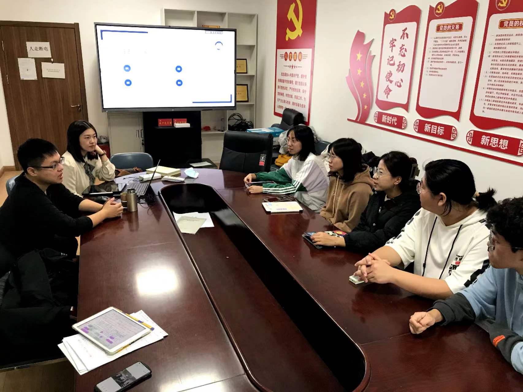 图为冯男、邵新慧为同学们做三育人活动中主题报告照片